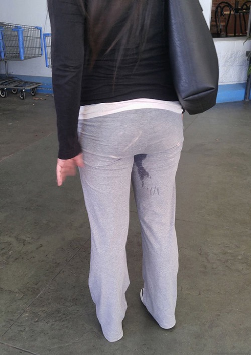 It looks like these sweatpants have a sprung a leak. I guess that's why they call them sweat pants. Although that doesn't look like sweat!