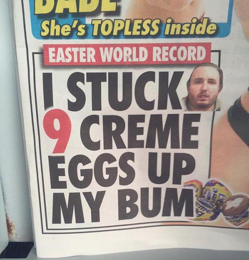 I think this guy took the Easter celebration a bit too seriously. You are supposed to eat those eggs not stick them up your ass!