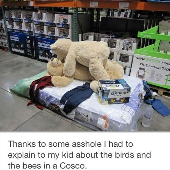 Thanks to some a**hole I had to explain to my kid about the birds and the bees in a Casco.