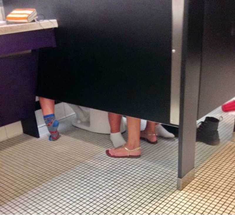What is going on here. I'm pretty sure three people are not going to the bathroom. Somebody call security.
