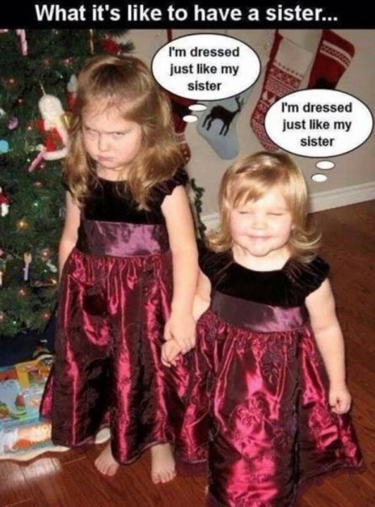 You can see these two little girls have a difference of opinion. Maybe mom should give them a different dress the next time?