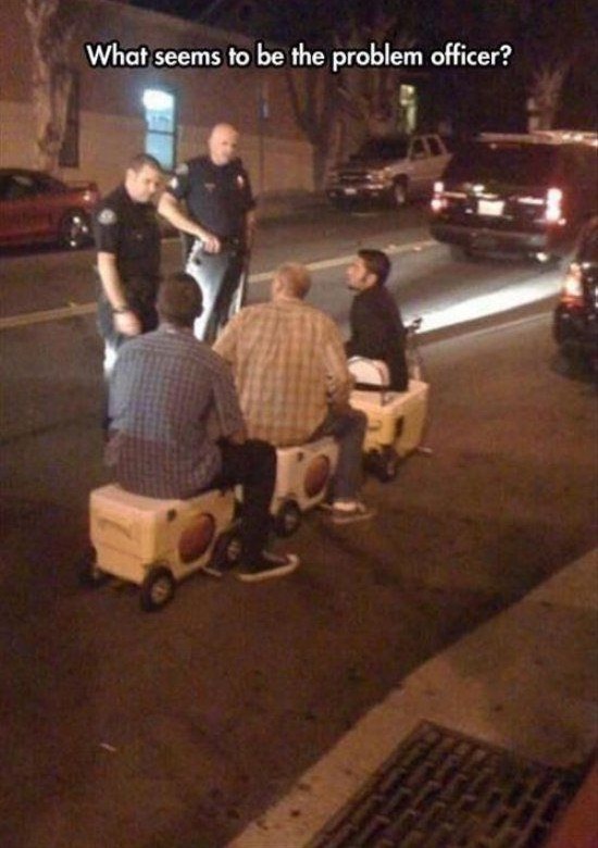 These guys should have known you can't drive around a beer cooler while your drunk. Next time get somebody else to drive you home or take the big boy train instead.