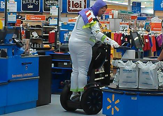 sometimes the funniest things can be so simple like this security guy driving the segways dressed up like buzz lightyear
