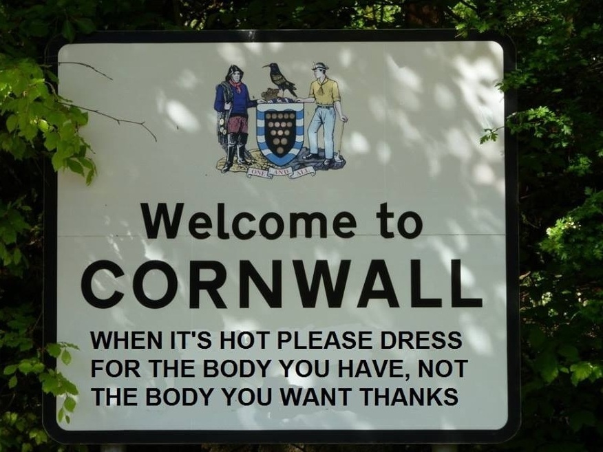 Cornwall is a very welcoming place but they are very particular about the way people dress themselves up. The weather is normally good but it can be hot sometimes and hence the Cornwall government has issued a notice saying that no matter what happens you must wear according to your body and not they way you think you look. Hahahahhahahhaah