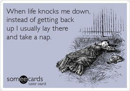 When life knocks me down instead of getting back up I usually lay there and take a nap. I might as well get some rest while I"m on the ground.