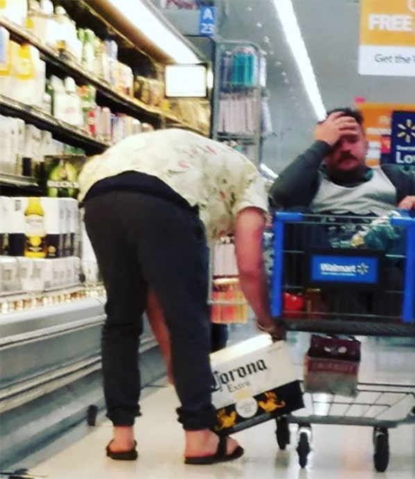 It's great mom is taking you shopping to Walmart. All you have to do is sit in the cart while she loads up the beer.