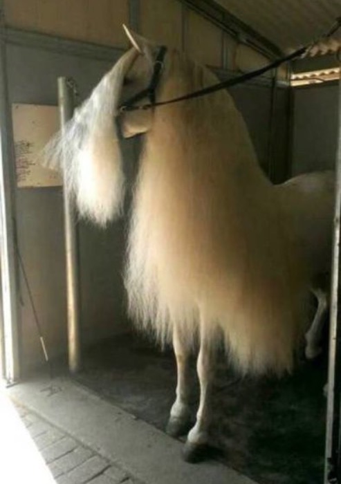 This is what I feel like when my bangs are too long. This horse has some extra long bangs!