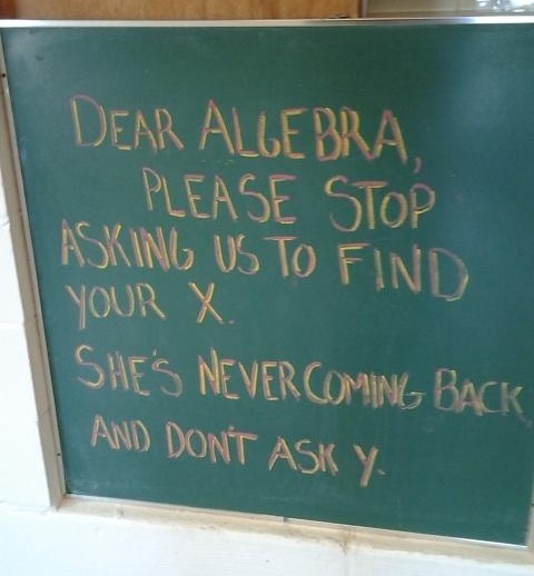 It's amazing how creative you become when the frustrations of Algebra get the better of you. Funny post, right here.