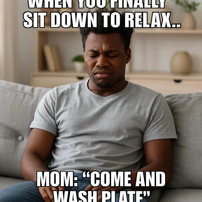 when you finally sut down to relax🧘🏿♀️.. mom:"come and wash the plate 😹