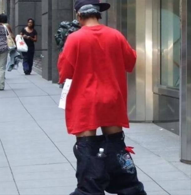 We understand this is a trend that makes pants drop lower and lower - but whoever started this better find a way to stop it because this is one fashion statement that gives us humans a bad rep.