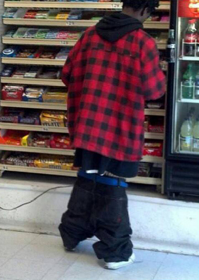Swag just doesn't say all the things that are wrong with this picture, next time this guy goes shopping he should just leave his clothes at home there's no point wearing it.