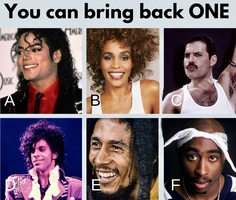 ["Michael Jackson","Whitney Houston","Freddie Mercury","Prince","Bob Marley","Tupac"]