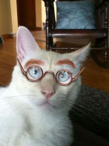 This cat really looks like he could be part person. Either somebody painted eyebrows on this poor guy or he has very unique markings. He looks very understanding. Probably finished reading a book.