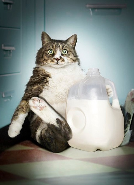 Busted I found the criminal my cat was drinking all the milk straight from the one gallon milk cart