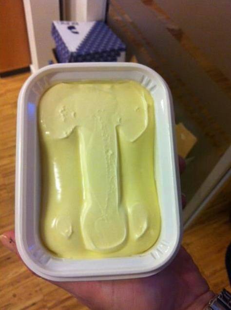 It looks like someone used their penis instead of a knife to scoop out some butter! It also looks extra creamy. Not going to swallow any of this!