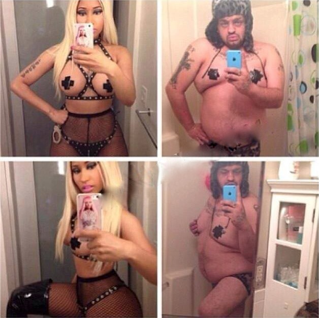 Who Wore It Better? Nicki Minaj vs Crossdressing Guy in Black Tape Tops WTF Fail