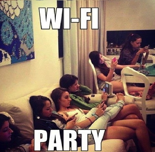 These girls look like they're having such a grand time at the Wi-Fi Party. They might as well just have stayed home if they were gonna spend all their time on their smartphones.