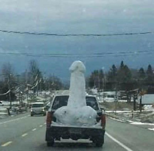 It's always nice to put a sign on the back of your truck to let everybody know you are hauling a wide load. Who wants to play with the snowballs?