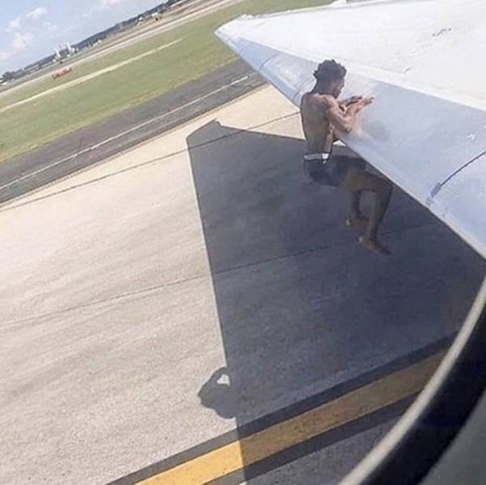 This guy is winging it. He reminds me of William Shatner in that episode of the Twilight Zone. There is a person on the wing!