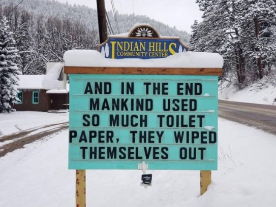 And in the end mankind used so much toilet paper, they wiped themselves out.