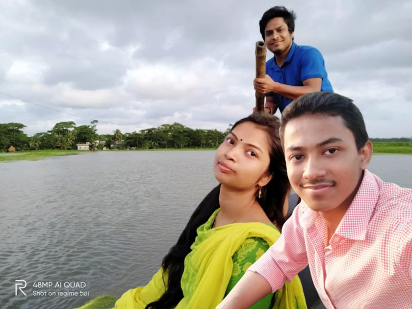 With only my Husband in a river...journey by Boat feel ❤️ University Holiday Enjoy! 🎉 How we look ❓❓ (Please Comment)