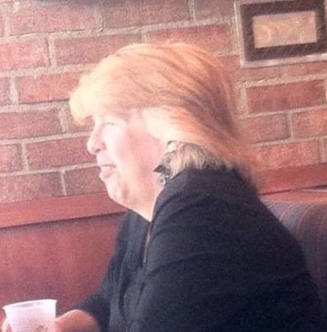 I don't know what happened to this lady but she might be a genetic clone of Hillary Clinton and Donald Trump. Weird science experiment!