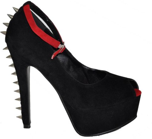 WOMENS HIGH HEEL BLACK RED METAL SPIKE