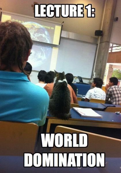 This cat is listening intently to the masters of world domination. This cat has big dreams.