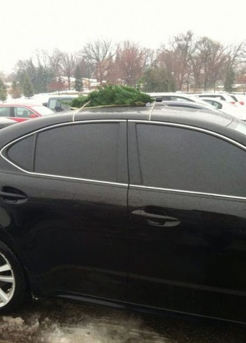 World's Smallest Christmas Tree Charlie Brown Tiny Tree Fail Tied to Top of Car