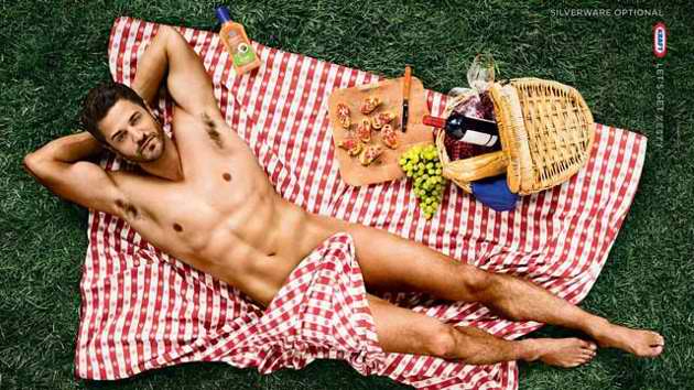 The company's new Zesty Italian Dressing campaign features an extremely well-built man lying naked on a picnic cloth arranged strategically over his body. “Silverware optional—Let’s get Zesty" serves as its tagline.