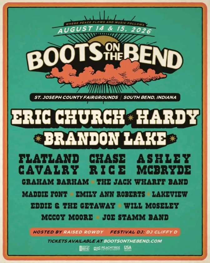 Y’all I can’t wait to be @bootsonthebend alongside @EricChurchmusic, @Hardy & so many other amazing artists this August! God’s been opening up some wild doors and I’m stoked for the opportunity! Pre sale opens this Wednesday. Come party with me! 🙌🏻❤️🙏🏼🤠