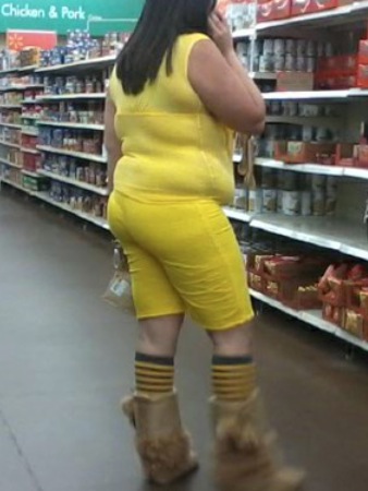 Yellow Bumble Bee Shorts Top and Socks and Beige Ugg Boots at Walmart - Fail