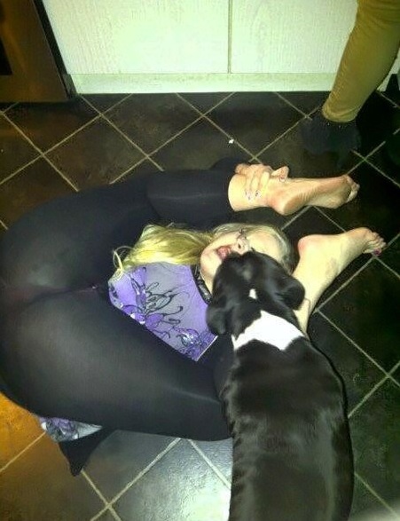 This dog really likes his mommy and he's letting her know at the absolute worst time. Your mom is currently a pretzel and now would not be an opportune time to kiss her!