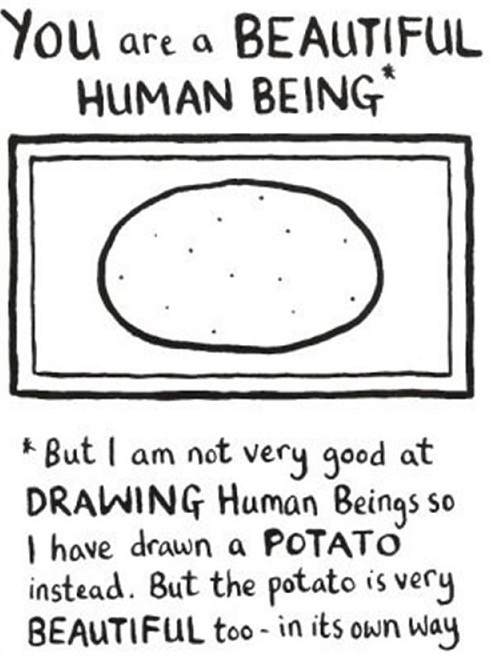 You are a beautiful human being. But I am not good at drawing human beings so I have drawn a potato instead. But this potato is very beautiful in it's own way
