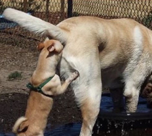 Dogs are great. They can meet you and immediately strike up a friendship. Sometimes they are a little too close for comfort. Ouch! Butt Head!