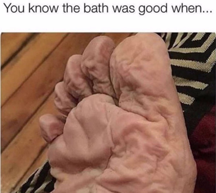 You know the bath was good one you get out of the water and your foot is a wrinkled prune.