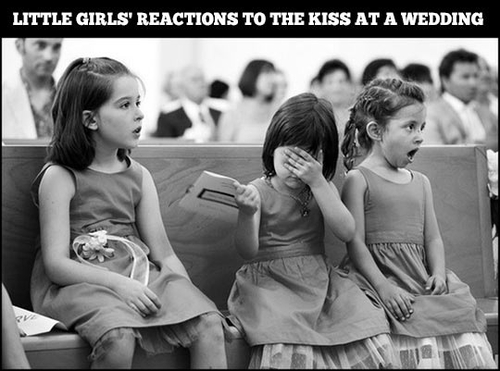 These little girls were quite shocked at the wedding kiss. The expressions on their faces are priceless. They are adorable and funny.