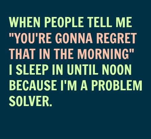 When people tell me "You're gonna regret that in the morning" I sleep in until noon because I'm a problem solver
