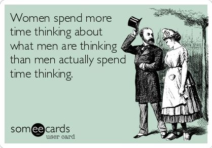 Women spend more time thinking about what men are thinking than men actually spend time thinking. So stop thinking so much!
