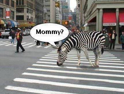 Zebra lost in New York City and found her mommy painted on the black top or on the streets of NYC.